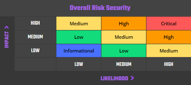 Our risk assessment model is based on two key factors: IMPACT and LIKELIHOOD. Impact refers to the potential harm that could result from an issue, such as financial loss, reputational damage, or a non-operational system. Likelihood refers to the probability that an issue will occur, taking into account factors such as the complexity of the contract and the number of potential attackers.
